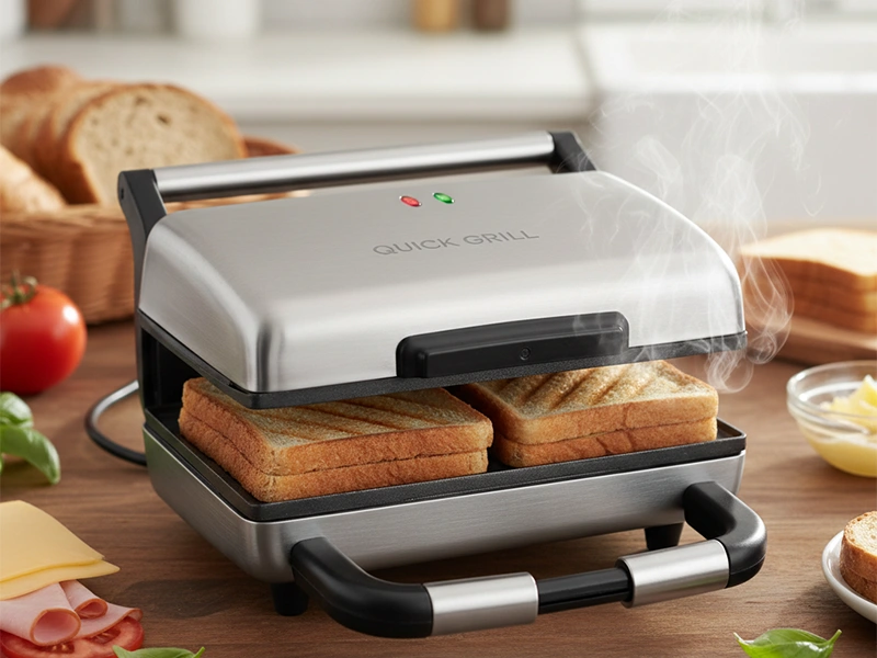 - ماهیتابه های گریل چدنی یا استیل: استفاده از ماهیتابه های گریل که روی اجاق گاز قرار می گیرند، یک راه حل سنتی و کاملاً ایمن است. چدن و استیل در دماهای پخت خانگی هیچ ترکیب شیمیایی خطرناکی آزاد نمی کنند و تنها نیازمند روغن مالی مناسب برای جلوگیری از چسبیدن هستند. مقاومت بالای چدن در برابر خراشیدگی، خطر ورود ذرات پلیمری به غذا را به طور کامل حذف می کند و این روش بهترین جایگزین برای کسانی است که به شدت نگران عوارض ساندویچ ساز هستند.