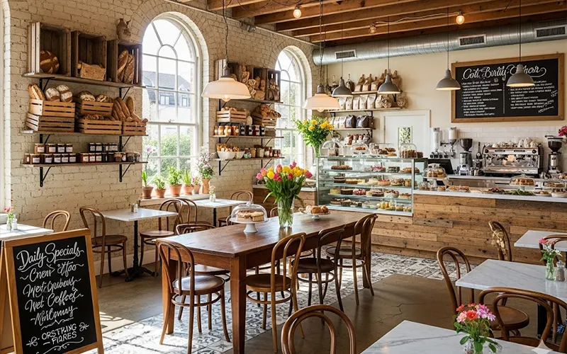 - کافه-Bakery مثل Tartine Bakery (سانفرانسیسکو): محصول برجسته + طراحی مینیمال صنعتی.