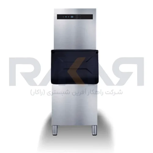 - بین یا مخزن (Bin):محفظه نگهداری یخ. در مدلهای زیرکانتری، مخزن چسبیده به دستگاه است. در مدلهای تناژ بالا (ماژولار)، مخزن جداگانه خریداری میشود. مخزنهای راکار دارای عایق پلیاورتان تزریقی هستند که یخ را تا ۲۴ ساعت نگه میدارند.