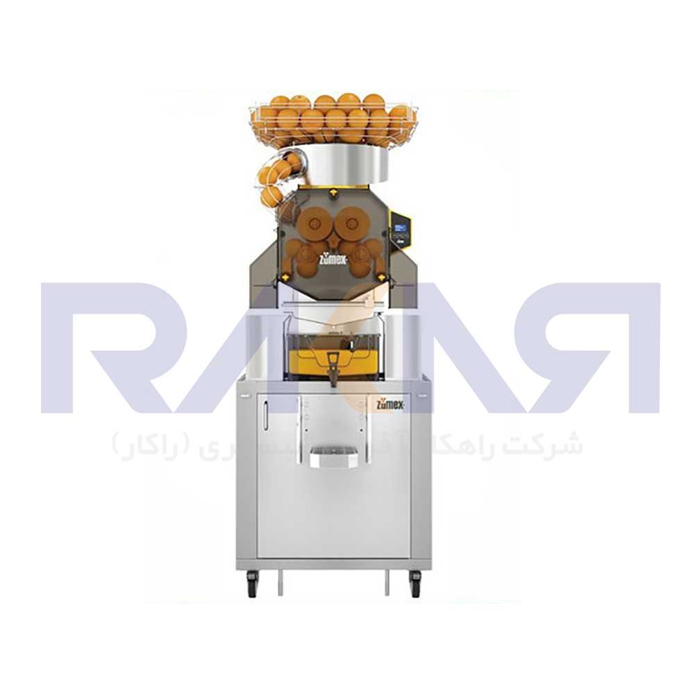 آب پرتقال گیری زومکس یخچال دار یک آب پرتقال گیری برقی است که مجهز به یخچال است. این دستگاه با کیفیت بالا و در سطح بین المللی در اسپانیا ساخته شده است. با توان 0/43 اسب بخار، قابلیت پردازش 40 عدد پرتقال در دقیقه را دارد. سبد جمعآوری میوه آب پرتقال گیری زومکس یخچال دار 20 کیلو گرم ظرفیت دارد. این دستگاه با برق تک فاز کار میکند و به دلیل تک فاز بودنش، توان مصرفی آن نیز کمتر است. این آب پرتقال گیری با توجه به قابلیت یخچال دار بودن، برای طرفداران آب پرتقال خنک بسیار مناسب است. یخچال داخلی دستگاه ظرفیت 7 لیتر دارد.