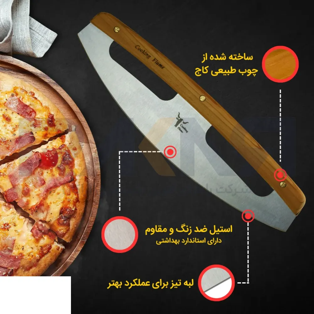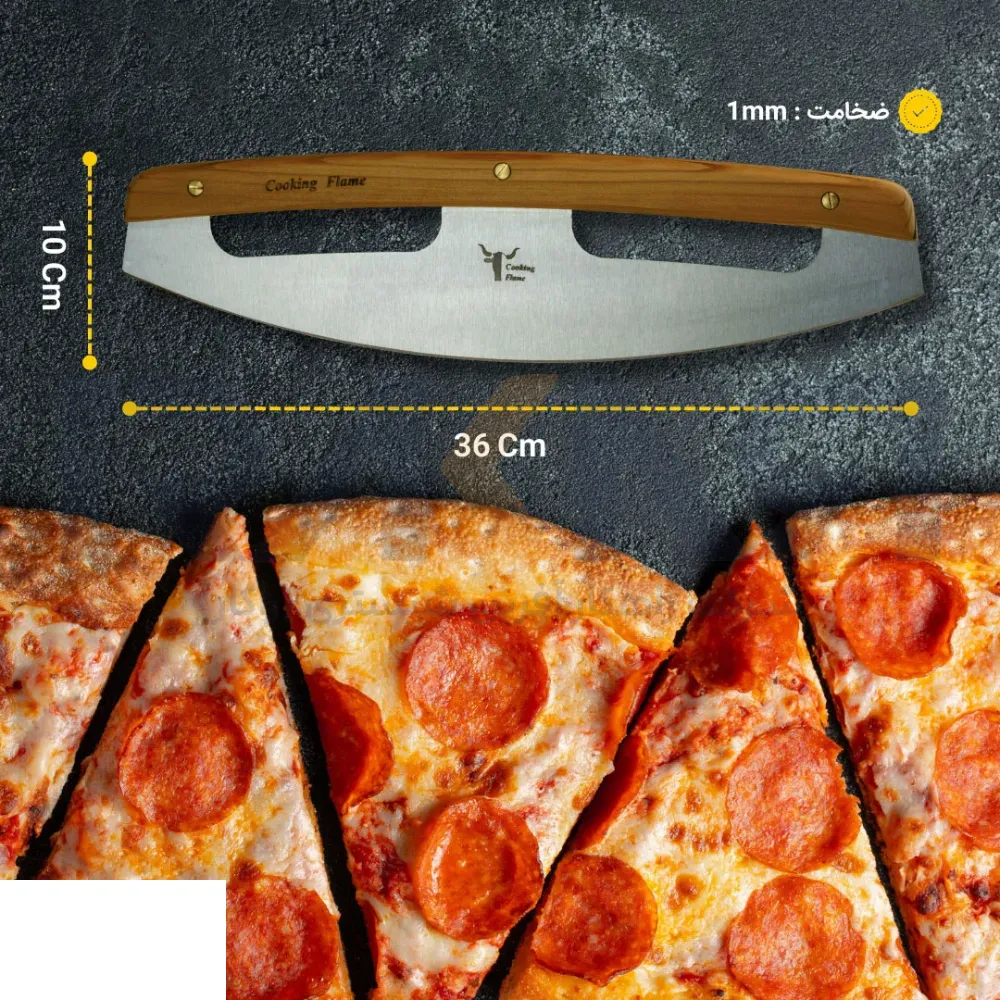 - تیغه استیل ضد زنگ: تیغهی پیتزا بر هلالی 38 سانتیمتری از جنس استیل ضد زنگ باکیفیت است که مقاومت بالایی در برابر زنگزدگی و خوردگی دارد. این تیغه تیز و مقاوم به شما امکان میدهد تا پیتزا را با دقت برش دهید.
