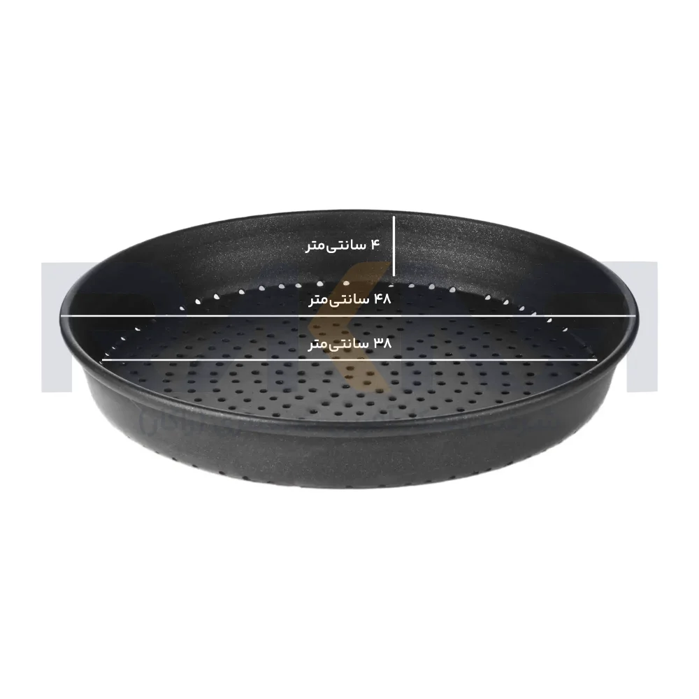 - ابعاد: قالب پیتزا آمریکایی با قطر ۳۸ سانتیمتر، مناسب برای تهیه پیتزاهای بزرگ و خانوادگی