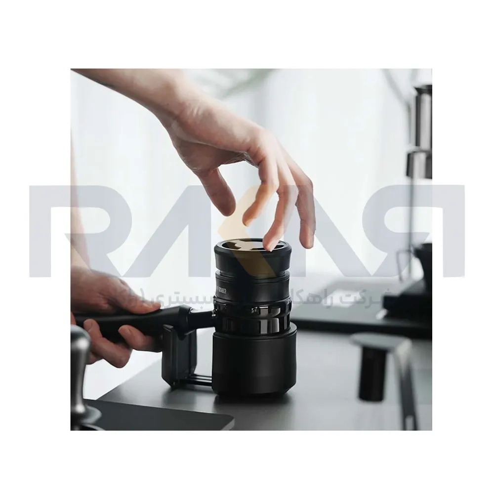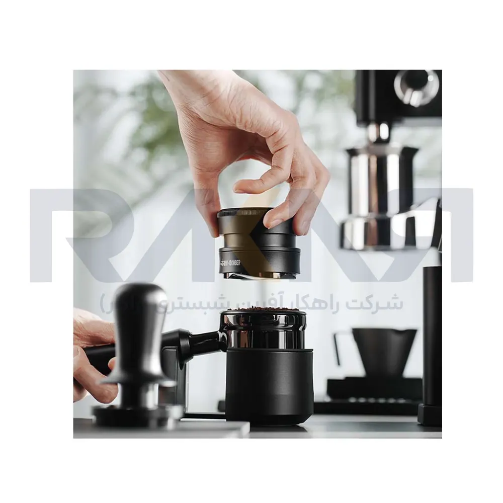 - تمپر کردن: پس از استفاده از لولر، با استفاده از تمپر، پودر قهوه را فشرده کنید.