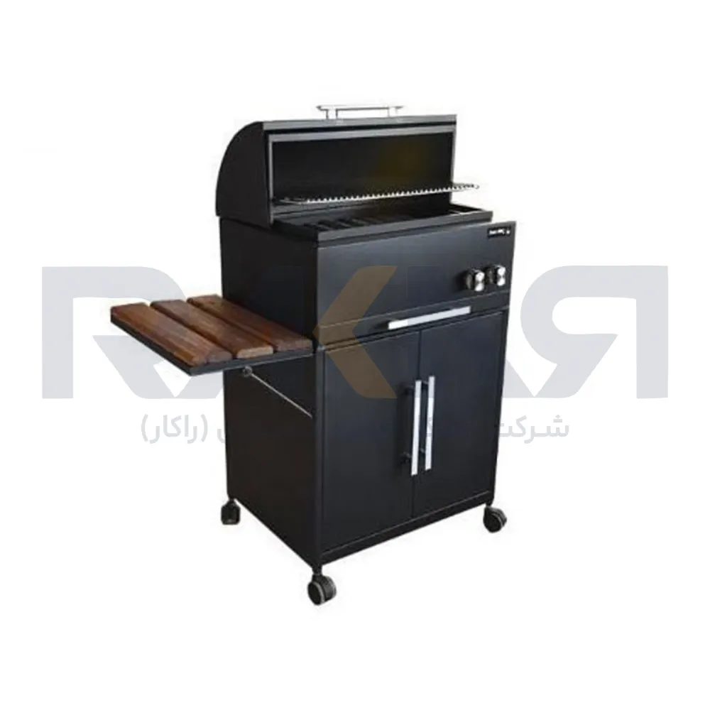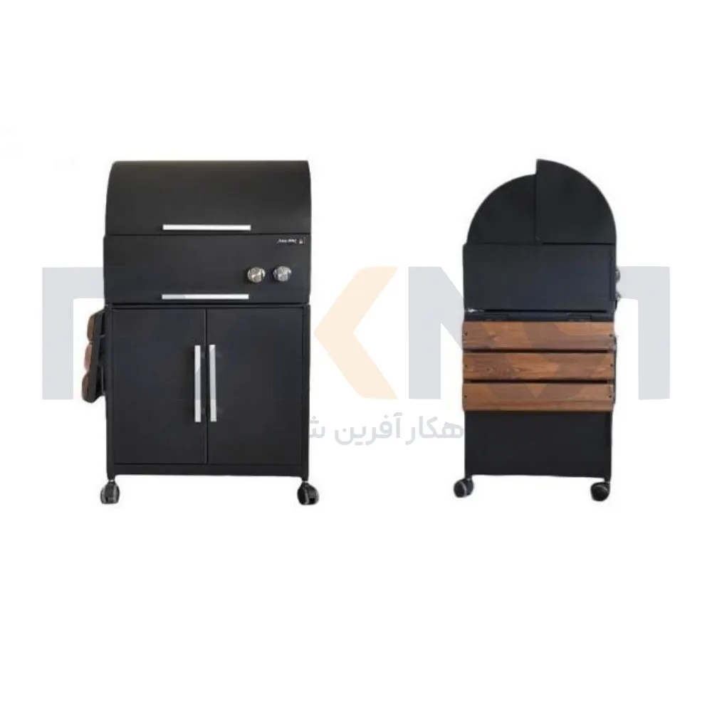 ۱. کبابپز ۶۲ سانتیمتری دودرب گرد با کابینت CC75 ارائه شده در راکار دارای بدنه ساخته شده از فولاد درجه یک که به وسیله رنگ استاتیک به خوبی پوشیده شده است.