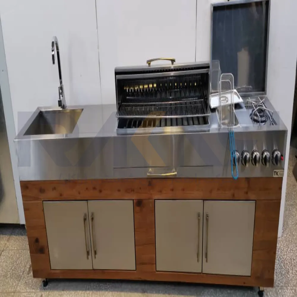 باربیکیو آیلند ۲۵۰ سانت استیل ترموود درب نیم هلال عرض ۵۰ یک آشپزخانه کامل در فضای باز است که تمامی نیازهای یک آشپزی حرفهای را برطرف میکند. از طراحی مقاوم و زیبا گرفته تا امکاناتی مانند کبابپز ۱۵ شعله، سرخکن، اجاق گاز، سینک و میزکار، همه چیز در این مدل فراهم شده تا تجربهای بینظیر از آشپزی در طبیعت، ویلا، حیاط یا حتی پشتبام برای شما ایجاد کند.