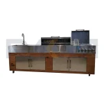 باربیکیو آیلند یا سفارشی با توجه به زیر ساخت های محل مورد نظر شما می تواند دارای امکانات مختلفی باشد. در صورتی که بخواهید از امکاناتی مانند شعله، سرخ کن، کباب پز بزرگ و سینک مناسب ظرفشویی و همچنین محلی برای قرارگیری سینی برای تعداد مهمانان زیاد استفاده کنید ما باربیکیو آیلند طول 250 سانتی استیل ترموود را پیشنهاد می دهیم.
