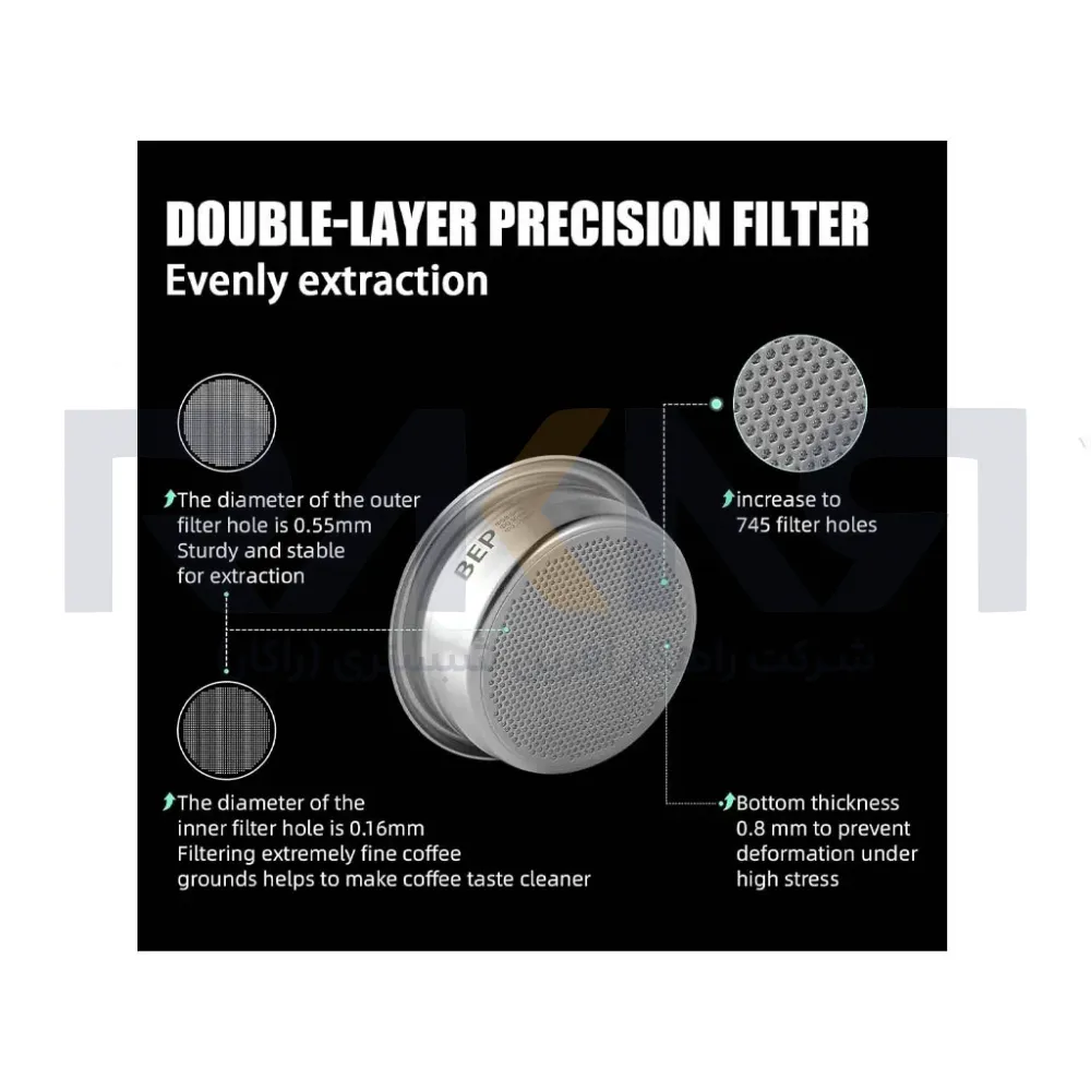 بسکت پرتافیلتر 58 میلی متر بمبر مدل FB5629 در فروشگاه اینترنتی راکار در دسته بندی بسکت که برای پرتافیلترهای 58 میلیمتری طراحی شده، با سوراخهای دقیق خود، عصارهگیری را بهبود بخشیده و کیفیت کرمای اسپرسو را ارتقا میدهد. این بسکت از استیل ضدزنگ ساخته شده، 20 گرم پودر قهوه را در خود جای میدهد و سطح مقطع مسطح آن، توزیع یکنواخت قهوه را تضمین میکند.