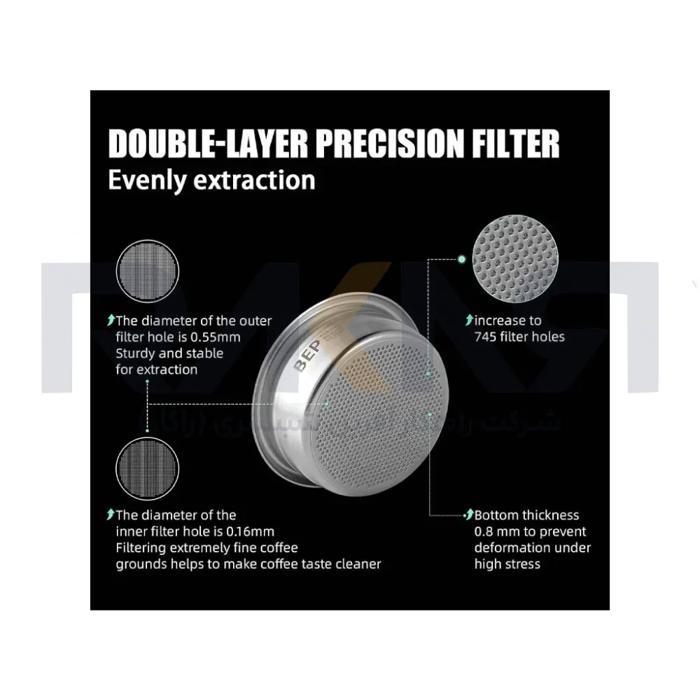 بسکت پرتافیلتر 58 میلی متر بمبر مدل FB5630 در فروشگاه اینترنتی راکار در دسته بندی بسکت با طراحی تخصصی برای پرتافیلترهای 58 میلیمتری، به لطف سوراخهای دقیق خود، فرآیند عصارهگیری را بهینه کرده و کرمای اسپرسو را به طور قابل توجهی بهبود میبخشد. این بسکت که از استیل ضدزنگ با کیفیت بالا ساخته شده، ظرفیت 22 گرم پودر قهوه را دارد و سطح مسطح آن، توزیع یکنواخت قهوه را تضمین میکند، در نتیجه، عصارهگیری یکدست و کامل را به ارمغان میآورد.