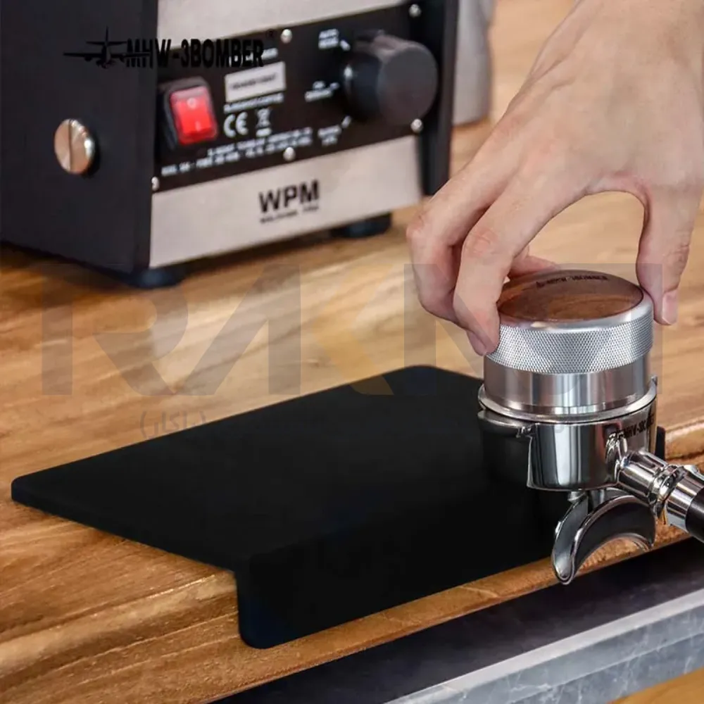تمپر مت قهوه بمبر در تجهیزات آشپزخانه صنعتی راکار در دسته بندی تمپینگ میت برای سرو اسپرسو و استفاده و جای گیری پرتافیلتر وسیله ای طراحی شده به نام مت که میز کار کوچکی برای باریستا محسوب میشود. در مدل مت تمپر تک این صفحه ی سیلیکونی قسمتی برای قرار گیری تمپر و قسمتی برای قرار گیری پرتافیلتر برای ثابت ماندن آن حین عملیات تمپ و قسمتی به فرم L برای جایگیری محکم و دقیق بر لبه ی میز کار تعبیه شده است.