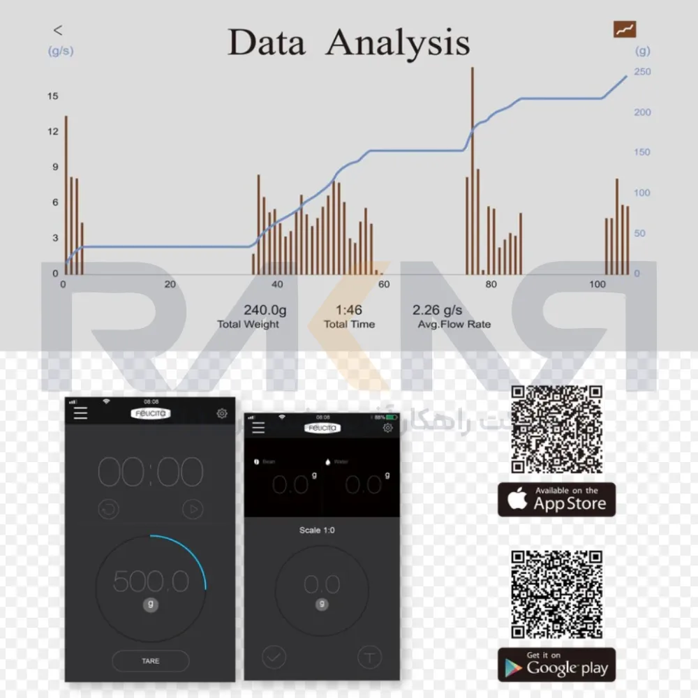 قابلیت تنظیم نسبت دمآوری(ratio) قهوه و آب و محاسبه ی حجم آب نهایی