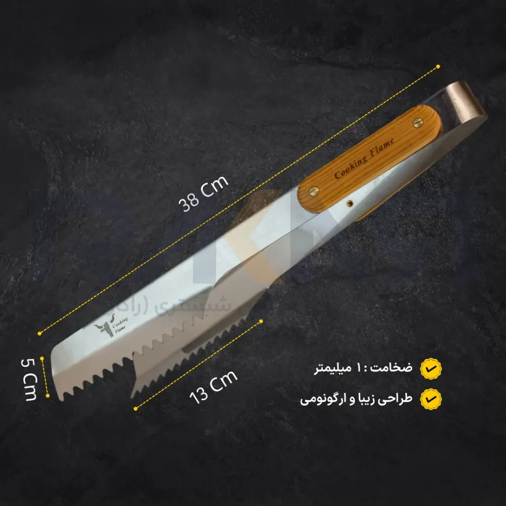 - مزیت: جابجایی آسان قطعات بزرگ گوشت و مواد غذایی، جلوگیری از افتادن آنها از روی باربیکیو.