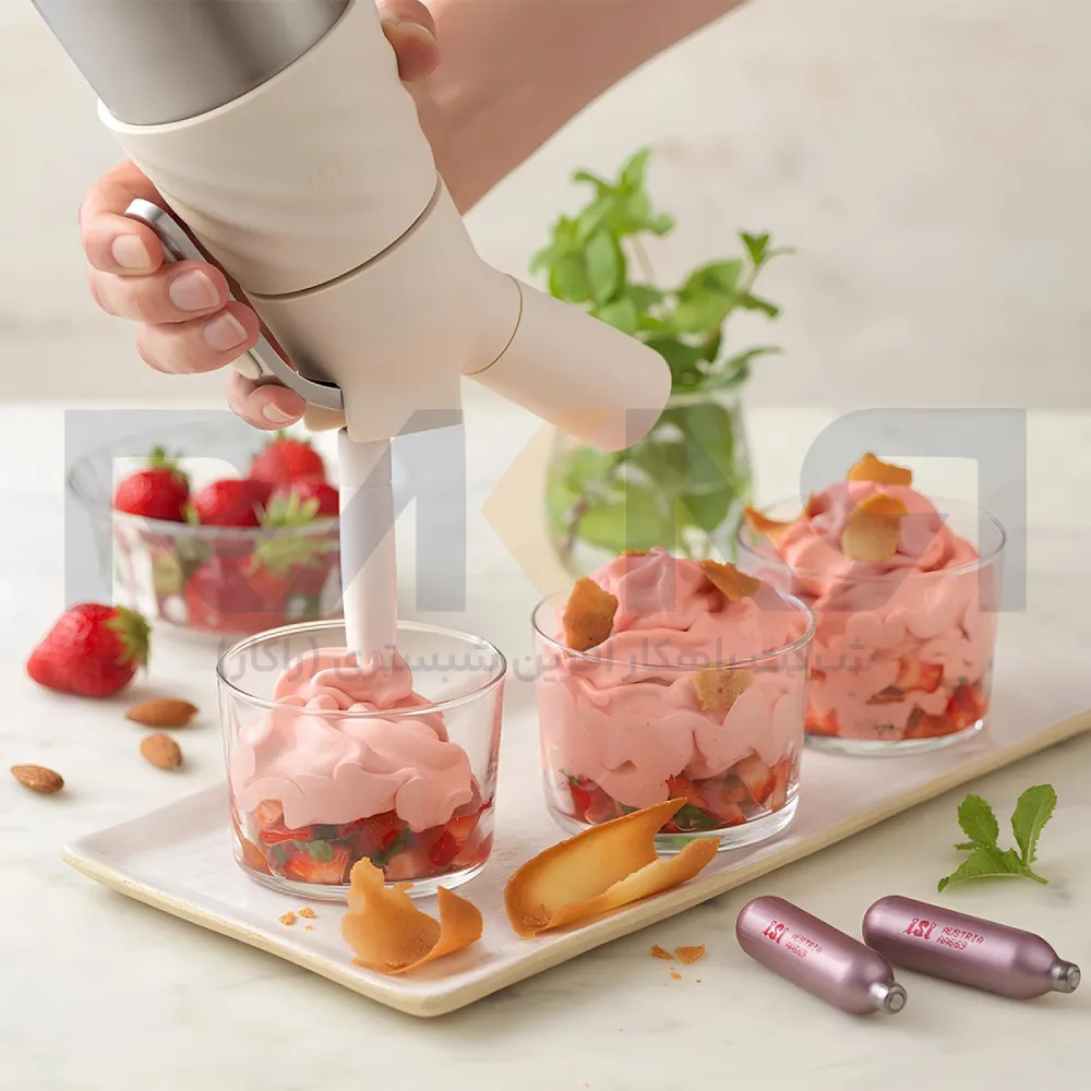 استفاده از دستگاههای خامه ساز آسانترین و بهصرفهترین روش برای تهیه یک خامه سبک با بافتی عالی و طعمی دلنشین است. دستگاه خامه ساز برند ISI مدل Creative Whip با استفاده از کپسولهای حاوی N2O پرفشار، فوم خامهای یکدست و فرمگرفته تهیه کرده که میتوان برای تزیین و طعمدهی انواع غذاهای گرم و سرد، موس، دسر و به عنوان تاپینگ قهوه از آن استفاده نمود.