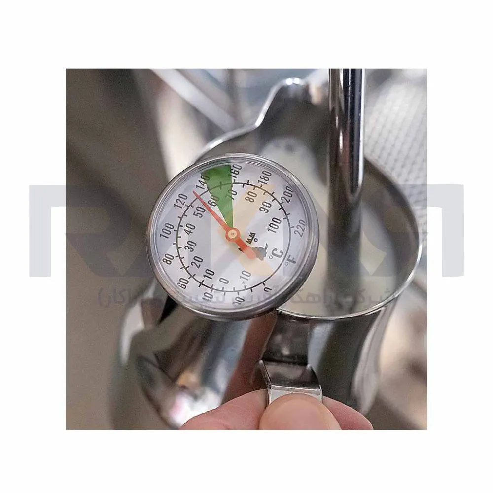 ترمومتر آنالوگ Motta در تجهیزات آشپزخانه صنعتی راکار در دسته بندی دما سنج (ترمومتر) یکی از ابزارهایی است که در کافه ها برای اندازه گیری دما مایعات مختلف استفاده می شود. جنس این ترمومتر از استیل بوده و قابلیت اندازه گیری دما بصورت فارنهایت و سانتی گراد می باشد. یکی دیگر از ویژگی های این ترمومتر این است که دارای گیره نگهدارنده می باشد که میتوانید به پارچ،پیچر یا لیوان متصل کنید.