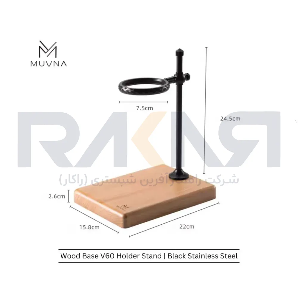 استند قهوه دمی v60 برند MUVNAیک وسیله کاربردی برای دم کردن قهوه به روش پور اور (pour over) است. این استند معمولاً از جنس فلز یا چوب ساخته میشود و دارای یک حلقه یا نگهدارنده برای قرار دادن دریپر V60 و یک پایه برای قرار دادن لیوان یا ظرف قهوه است.
