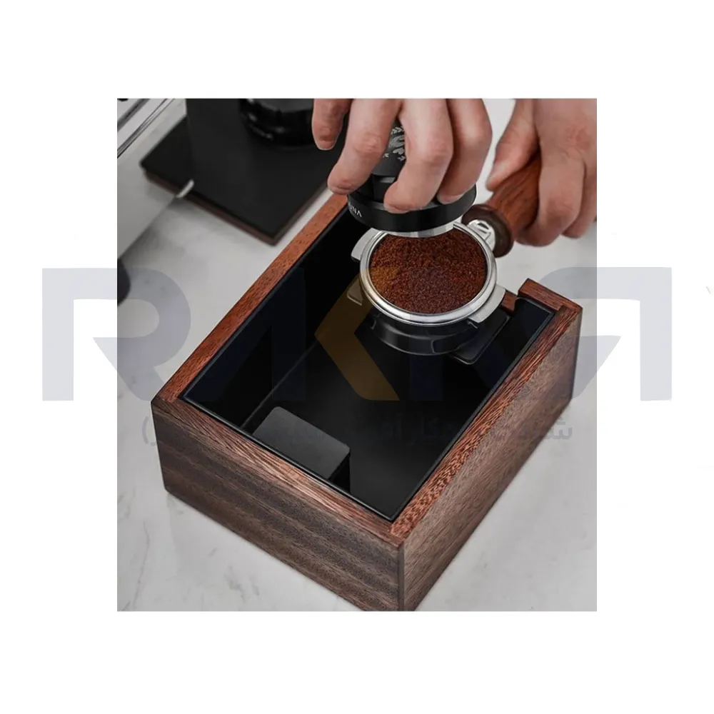 - کاهش صدا: لایه پد لاستیکی در پایین ناک باکس فلزی با چوب گردو MUVNA به کاهش صدای پرتاب کفهای قهوه کمک کرده و محیط کار را آرامتر نگه میدارد.