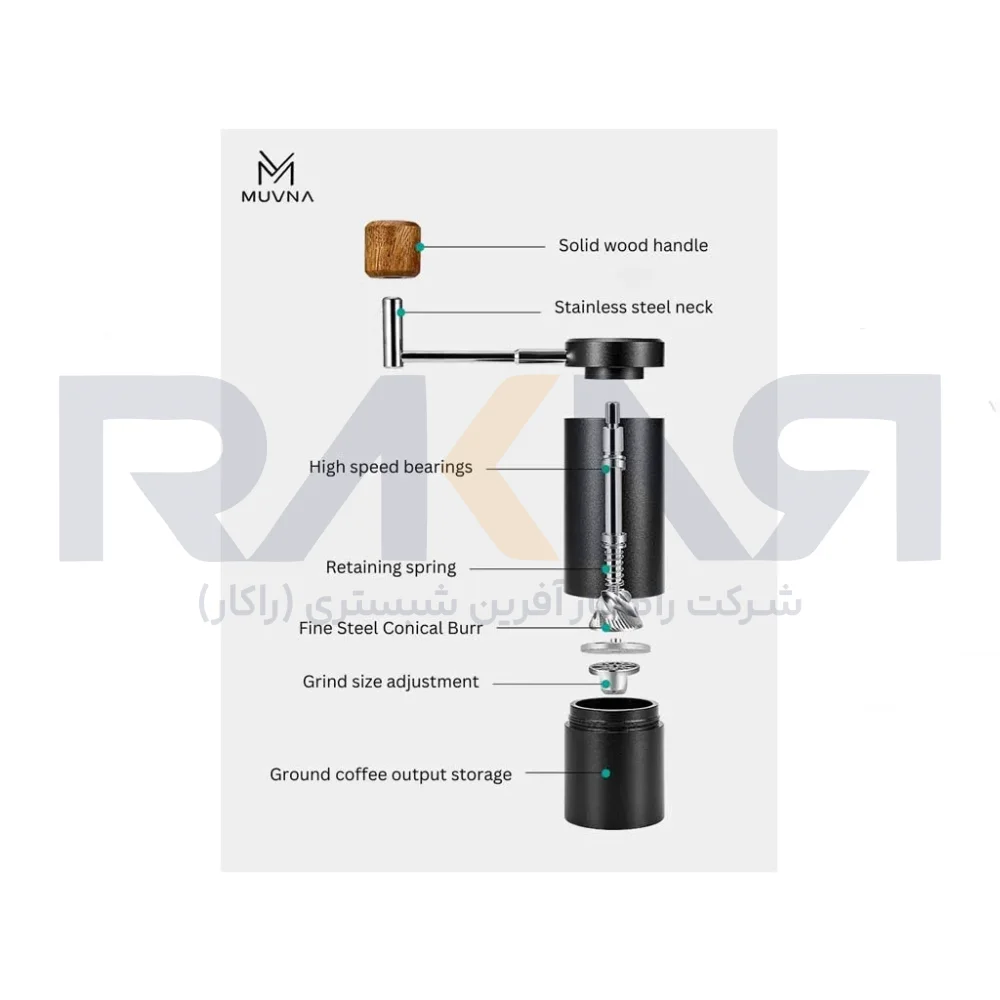 آسیاب قهوه دستی مدل روتاری MUVNA با طراحی زیبا، عملکرد بینقص و دوام بالا، یکی از بهترین انتخابها برای هر کسی است که میخواهد از عطر و طعم واقعی قهوه لذت ببرد. اگر به دنبال محصولی هستید که هم در خانه و هم در سفر همراه شما باشد، این آسیاب دستی میتواند نیازهای شما را بهخوبی برآورده کند.