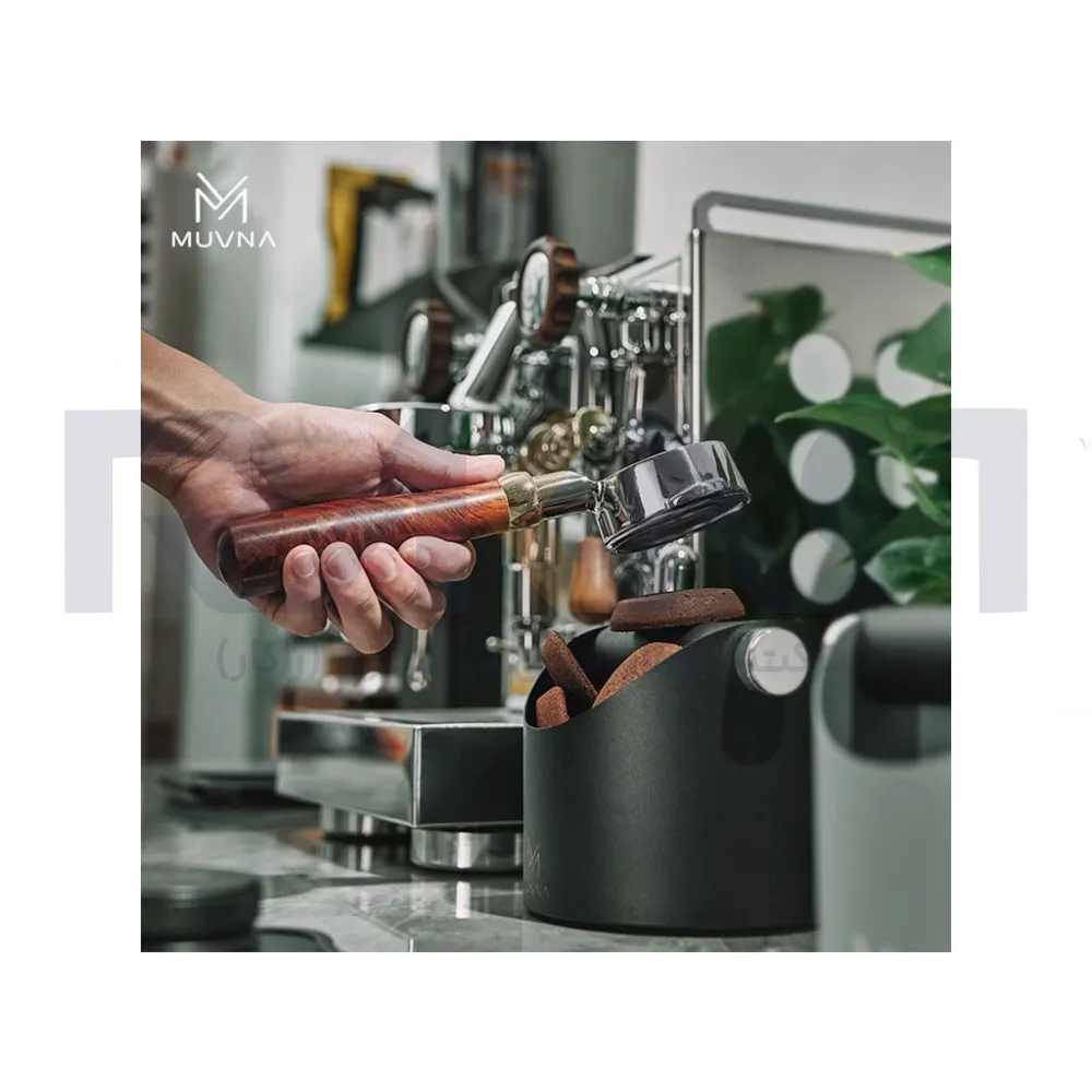 ناک باکس قهوه فلزی کوچک MUVNA ابزاری است که برای جمعآوری تفالههای قهوه پس از عصارهگیری استفاده میشود. این وسیله به باریستاها کمک میکند تا پورتافیلتر را به راحتی تخلیه کنند و محیط کار را تمیز نگه دارند. ناک باکسها معمولاً از فلز یا پلاستیک ساخته میشوند و دارای یک میله ضربهزن هستند که باریستا میتواند پورتافیلتر را بر روی آن بکوبد تا تفالهها به داخل ناک باکس بریزند. برخی از ناک باکسهای مدرن دارای ویژگیهایی مانند پایههای ضد لغزش، طراحی ارگونومیک و مواد با کیفیت هستند که استفاده از آنها را راحتتر میکند.