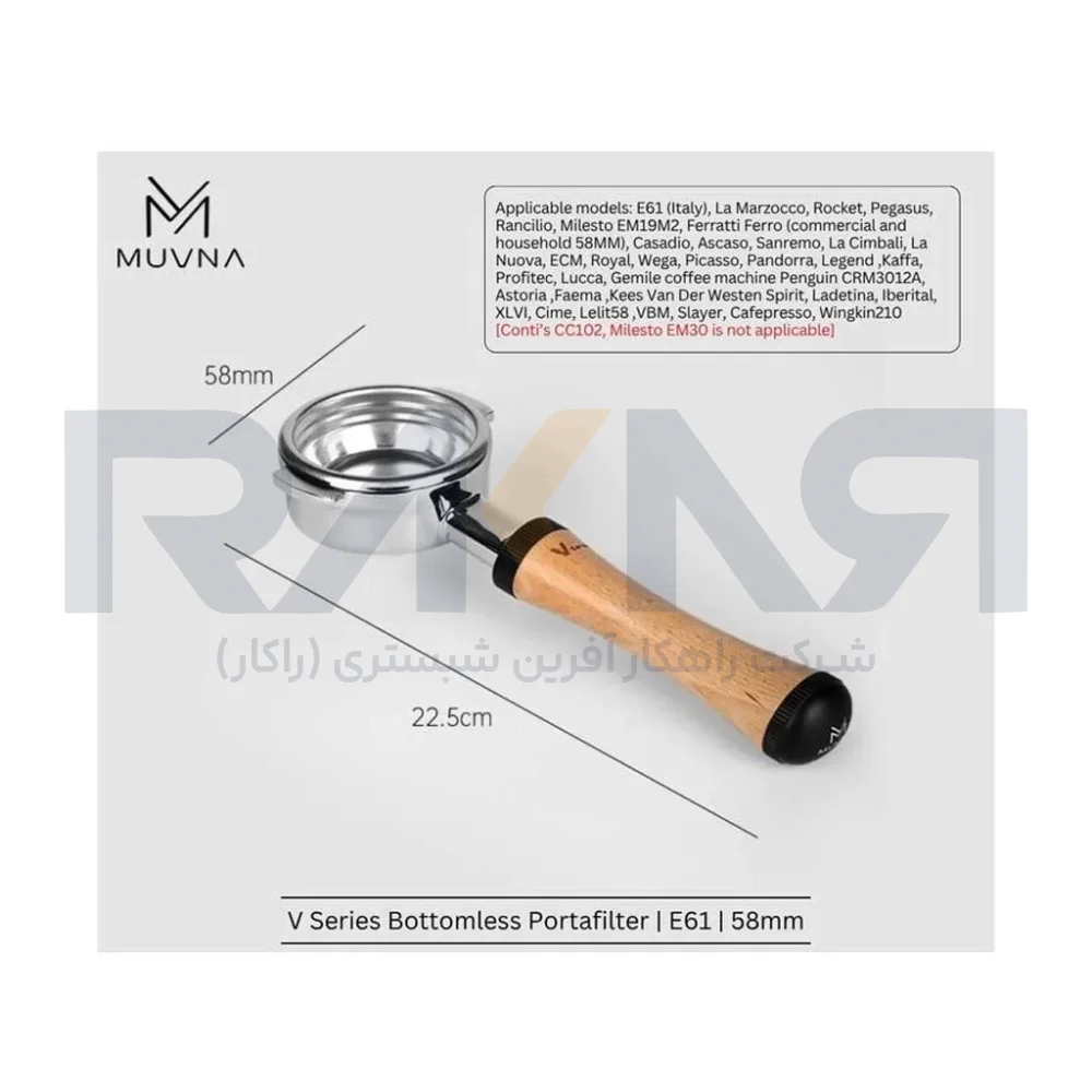 تجهیزات قهوه سری V نسخه ویژه MUVNA در تجهیزات آشپزخانه صنعتی راکار در دسته بندی ست بار گرم یک ست حرفهای و لوکس برای باریستاها و کافیشاپهاست که برای پورتافیلترهای استاندارد ۵۸ میلیمتری طراحی شده است. این مجموعه با ترکیب فولاد ضد زنگ درجه غذایی و چوب طبیعی ساخته شده و همراه با سبد ۱۸ گرمی و ابزار WDT عرضه میشود. کیفیت ساخت بالا، ظاهر زیبا و عملکرد دقیق، این محصول را به گزینهای ایدهآل برای باریستاهای حرفهای تبدیل کرده است.