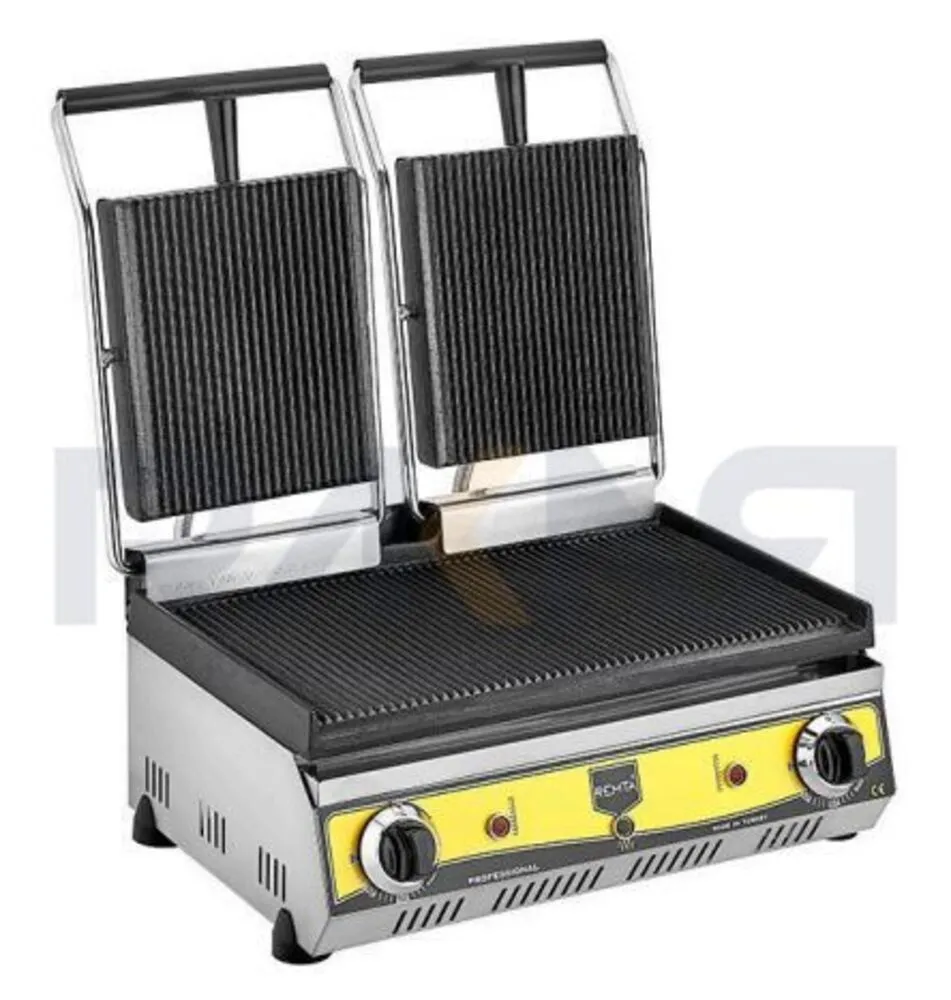 کنترل دوگانه: هر گریل دارای ترموستات مستقل است، که به اپراتور اجازه میدهد همزمان دو نوع ماده غذایی را با دماهای متفاوت گریل کند.