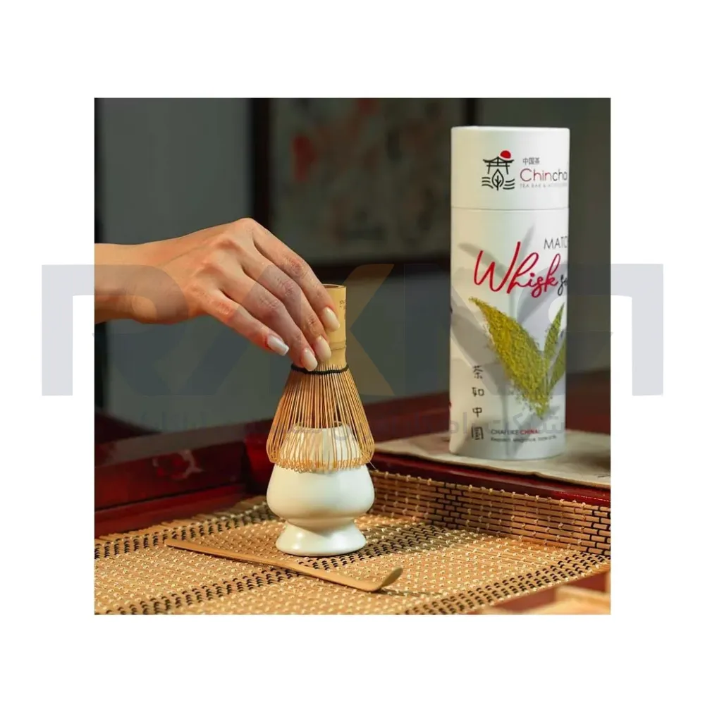 نیمست ماچای ژاپنی برند چین چای، یک انتخاب عالی برای تهیه چای ماچا است و بهویژه برای استفاده در کافهها و رستورانها یا بهعنوان هدیهای خاص برای علاقهمندان به چایهای شرقی بسیار مناسب به نظر میرسد. این مجموعه زیبا و کاربردی شامل یک ویسک چوبی بامبو صد پر، یک ویسک هولدر (استند مخصوص ویسک) و یک چاشاکو (پیمانه مخصوص پودر ماچا) میباشد. بستهبندی استوانهای و منحصر به فرد این ست بهطور مؤثری ویسک را محافظت کرده و حمل آن را آسان میکند، بهطوری که میتوان آن را به راحتی در هر مکان به همراه داشت.