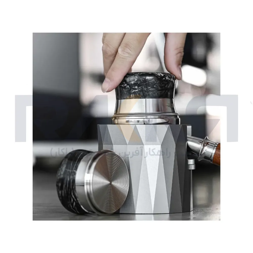 - تمپر کردن: پس از استفاده از لولر، با استفاده از تمپر، پودر قهوه را فشرده کنید.