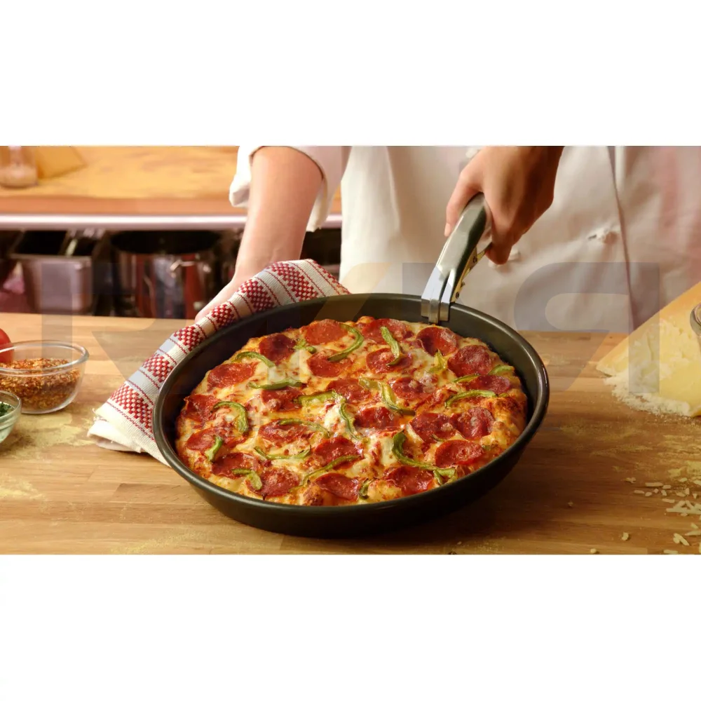 - طراحی عمیق : این قالب با عمق ۴ سانتیمتر و طراحی عمیق، برای پخت پیتزاهای ضخیم آمریکایی ایدهآل است. این ویژگی به شما کمک میکند تا پیتزاهایی با حجم بیشتر و پرمحتواتر تهیه کنید.
