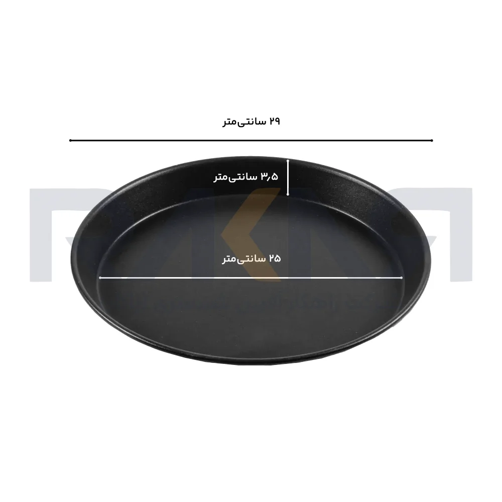- ابعاد قالب: قطر این قالب ۲۵ سانتیمتر و عمق آن ۳.۵ سانتیمتر است. لازم به ذکر است که قطر اعلام شده به قطر کف قالب اشارهدارد.