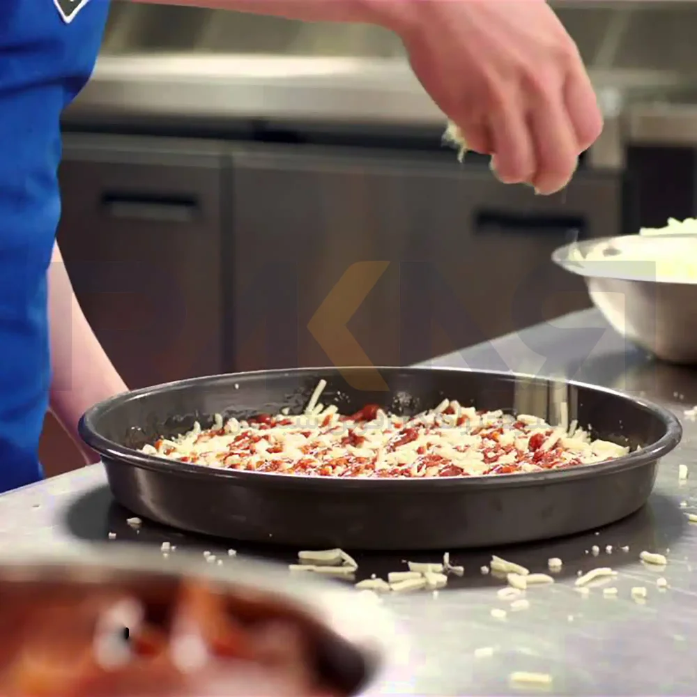 - پوشش مقاوم و گرمایش سریع: پوشش سخت و رنگ تیره قالب به جذب سریعتر گرما کمک میکند. در نتیجه، پیتزا سریعتر و بهتر پخته میشود.