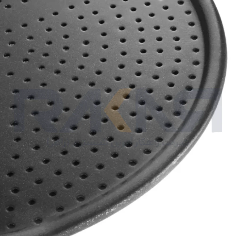 - قالب پانچ با سوراخهای کف: این قالب با طراحی پانچ و سوراخهای کف به بهبود توزیع حرارت کمک میکند. این سوراخها اجازه میدهند تا حرارت به طور یکنواخت به زیر خمیر برسد و پیتزا به طور کامل و یکنواخت برشته شود.